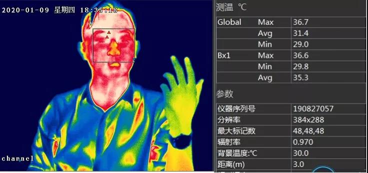 人體測溫?zé)嵯駜x(醫(yī)用熱像儀)使用非接觸紅外測溫原理,可以獲取物體的紅外圖像和溫度信息,不同的溫度在熱像圖中以顏色進(jìn)行區(qū)分,即使只有0.04℃的溫差也能分辨的出來。由于新型冠狀病毒感染的肺炎病例的主要癥狀為高溫發(fā)熱,檢測人員使用人體測溫?zé)嵯駜x(醫(yī)用熱像儀)可以準(zhǔn)確快速地發(fā)現(xiàn)高溫旅客,有效提高肺炎感染排查和檢測效率。